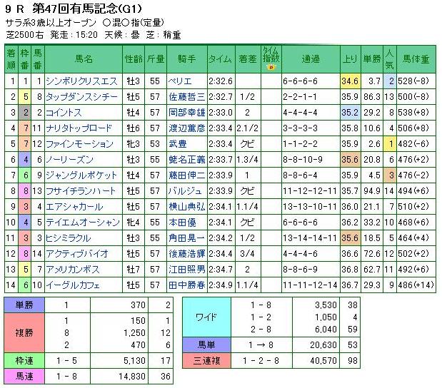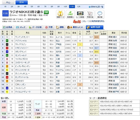 有馬記念前のラジオ日経杯2歳Sで景気良く馬連万馬券ゲット。このメンバーなら、この1,2着でも万馬券はないかな?と思っていましたがうれしい誤算です |