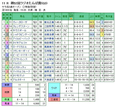 またも3年ぶりの万馬券。差し脚が決まる展開が見事はまった。1〜3着に全て印をつけたので3連複も欲しかった |