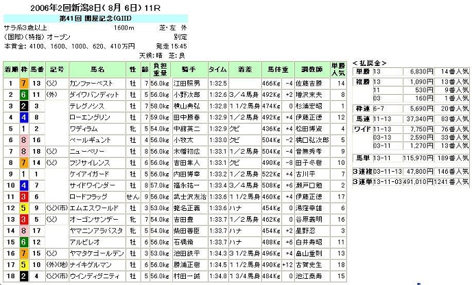 2006年以来の関屋記念での万馬券。ボンドガールも2度目の万馬券に絡みガッチリ |