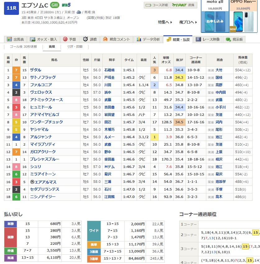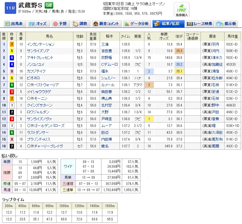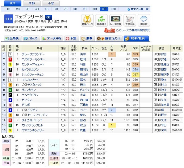 同じくフェブラリーS。ワンダーアキュートも最後に3着に追い込んできて3連複をゲット。これは大きな勝利です。 |