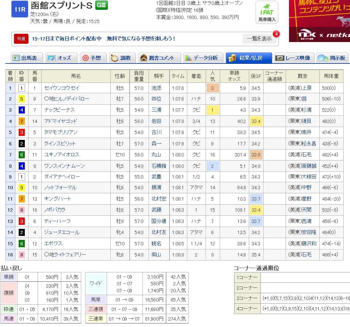 ダービーの余韻なのか?ナックビーナス、セイウンコウセイからヒルノデイバローを拾って万馬券ゲット |