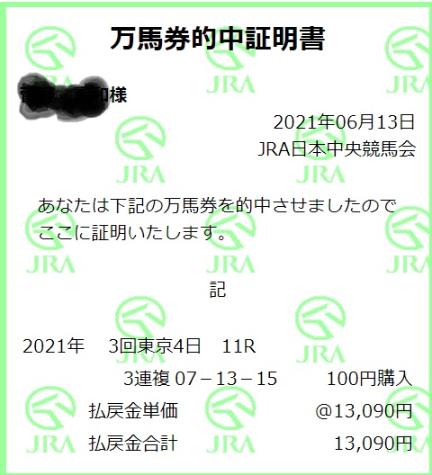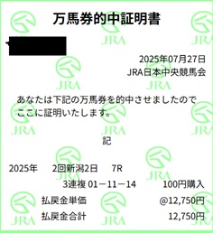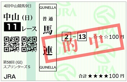 予想ソフト『3ハロンIII』通りに購入したら当たってしまった。意外にもGI以外では始めて |