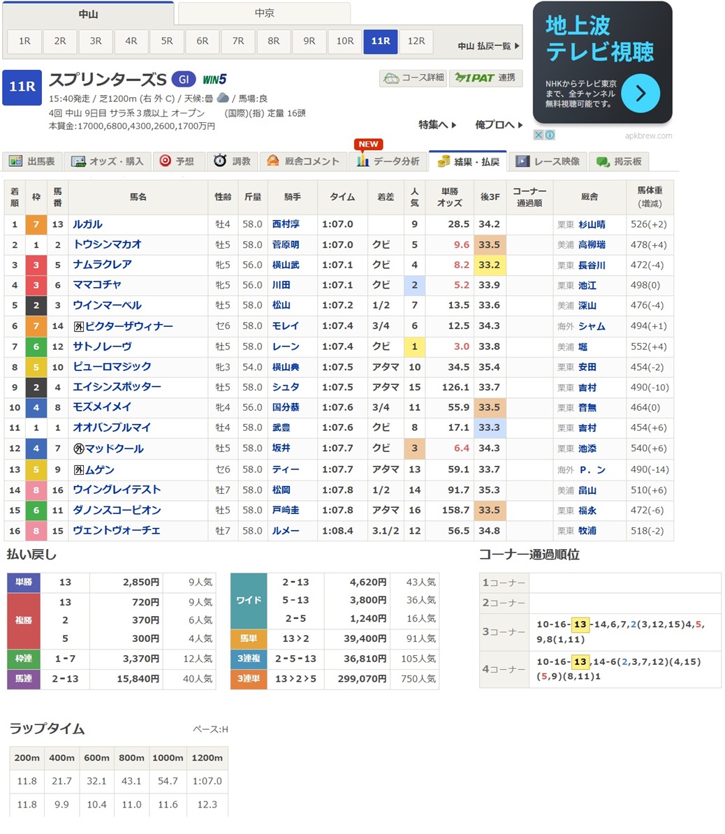 POGの所有馬のフサイチリシャールが勝ち、しかも3連単ゲットで嬉しい朝日杯。今後も活躍して欲しいです。 |