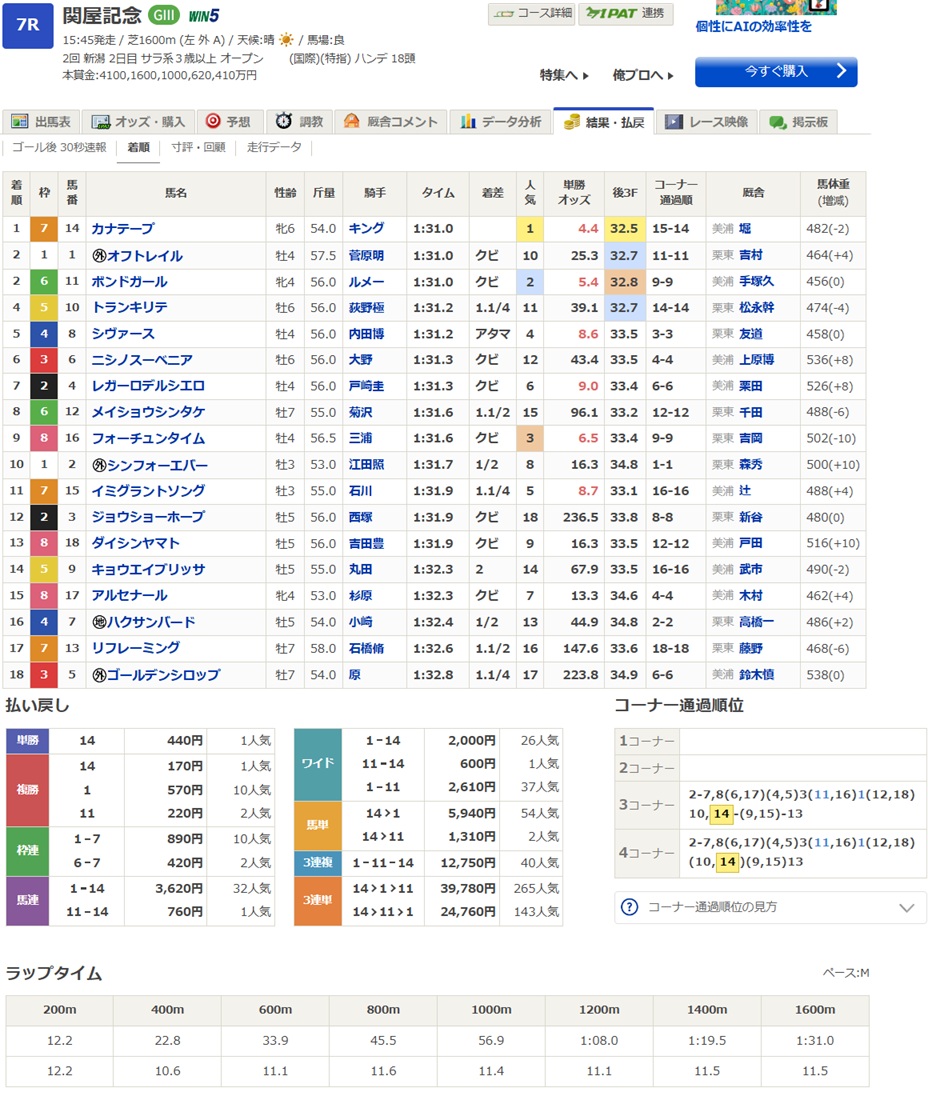 ずっと応援していたカンファーベスト。14番人気まで落ちてしまいました。ここは奮起して意地のミラクル万馬券。美味しかったです。 |